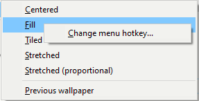 Set as Wallpaper (Ctrl Shift C,F,T,S,X,P) Set current image as your desktop wallpaper: Centred (C), Fill (F), Tiled (T), Stretched (S), or Stretched proportional (X).