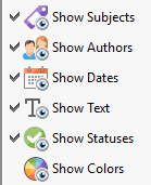 From the Comments pane one can selectively show or hide comments in a document. The status submenu records the status of the comments.
