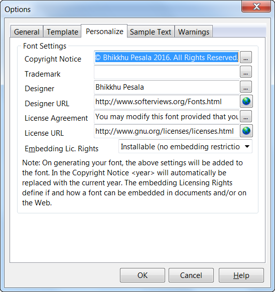 A template editor lets you make your own custom templates, but please note that you need the Premium Edition to generate fonts from the custom templates.