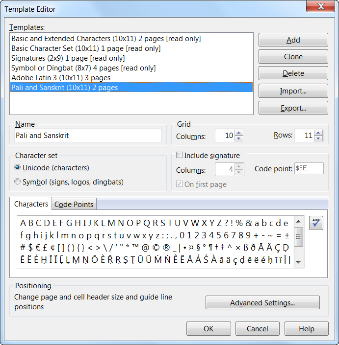 The Premium Edition includes a four page Symbol template for symbol fonts, and can generate multilingual fonts using the custom templates created in the Template Editor.